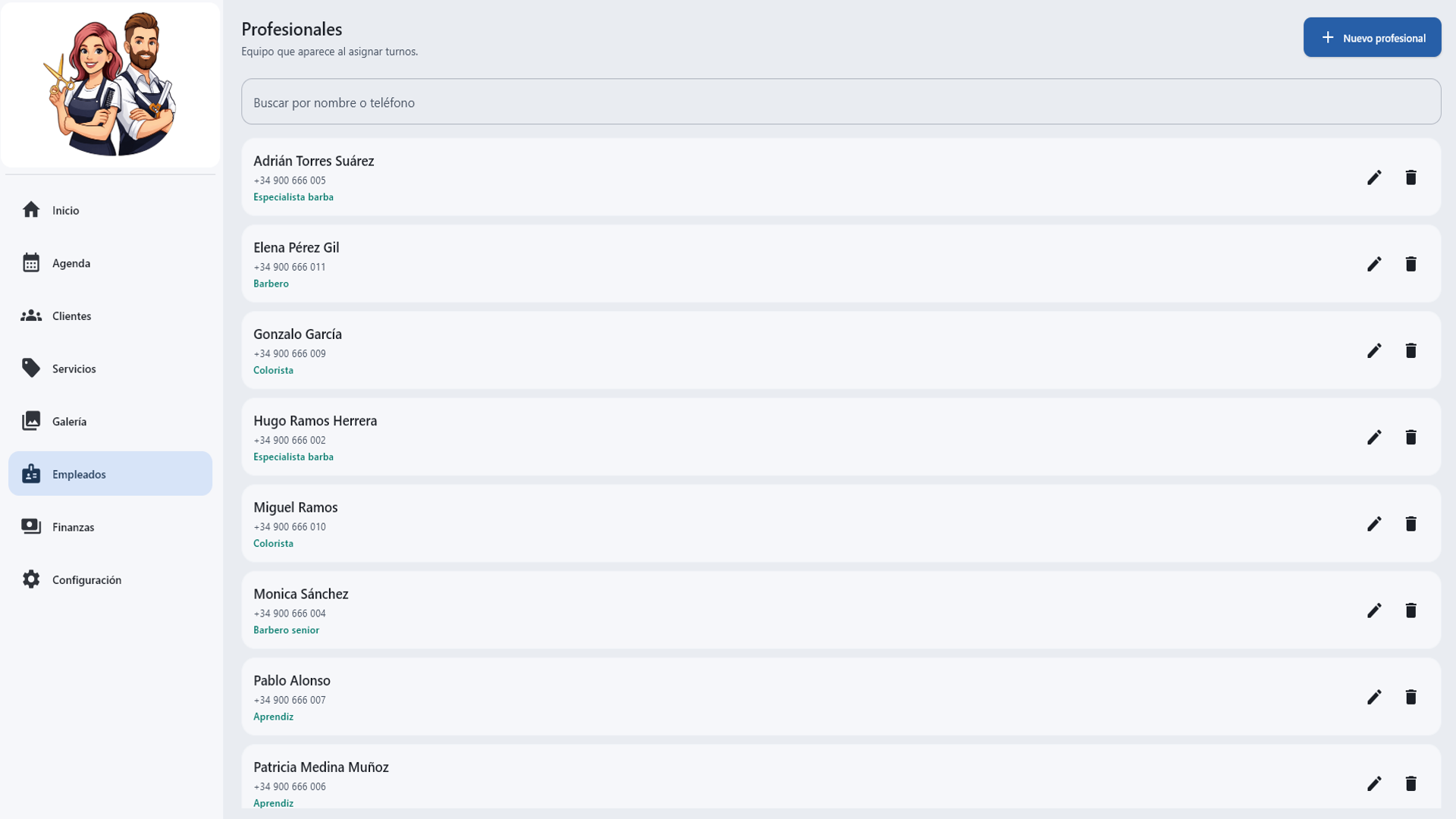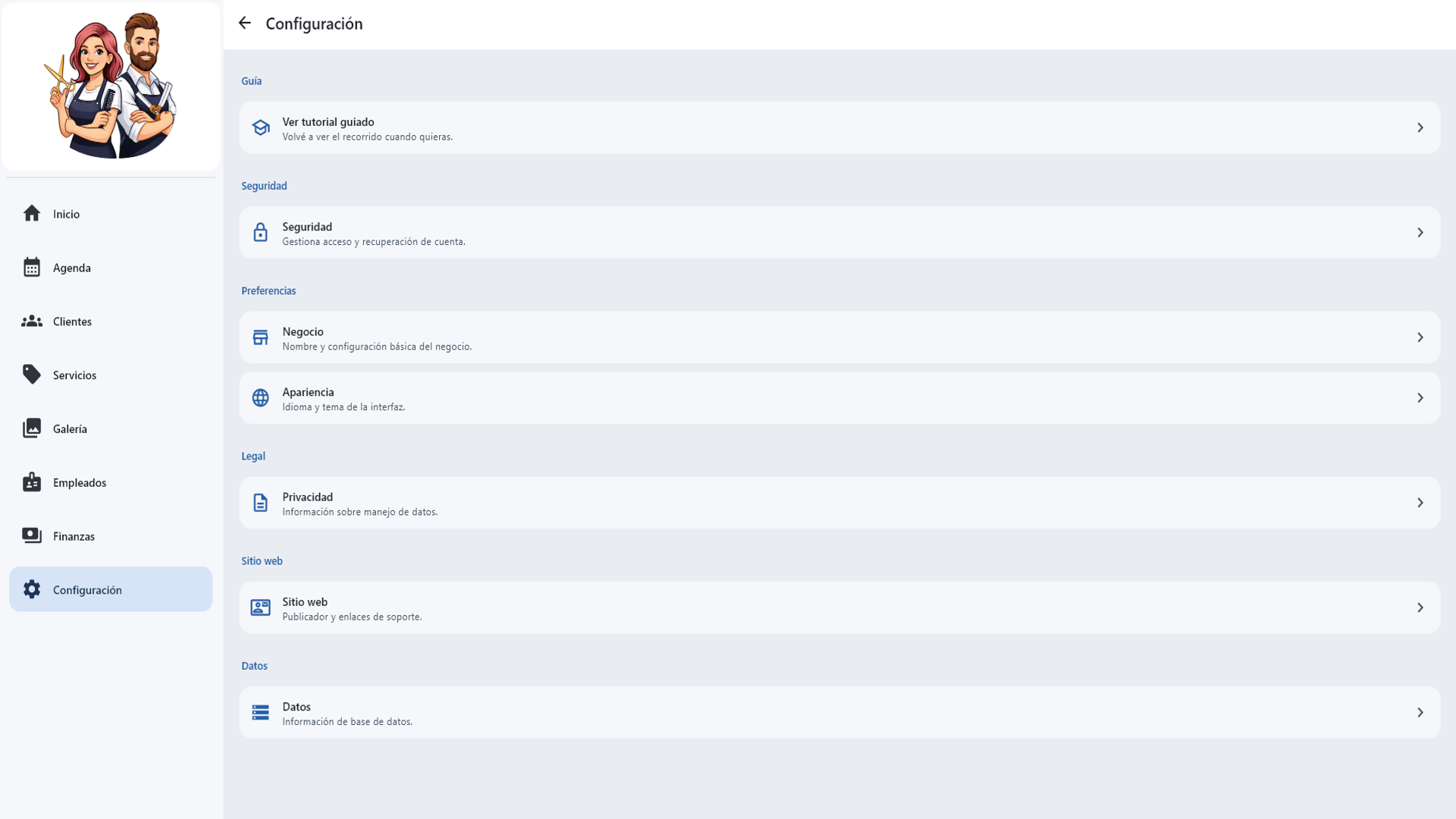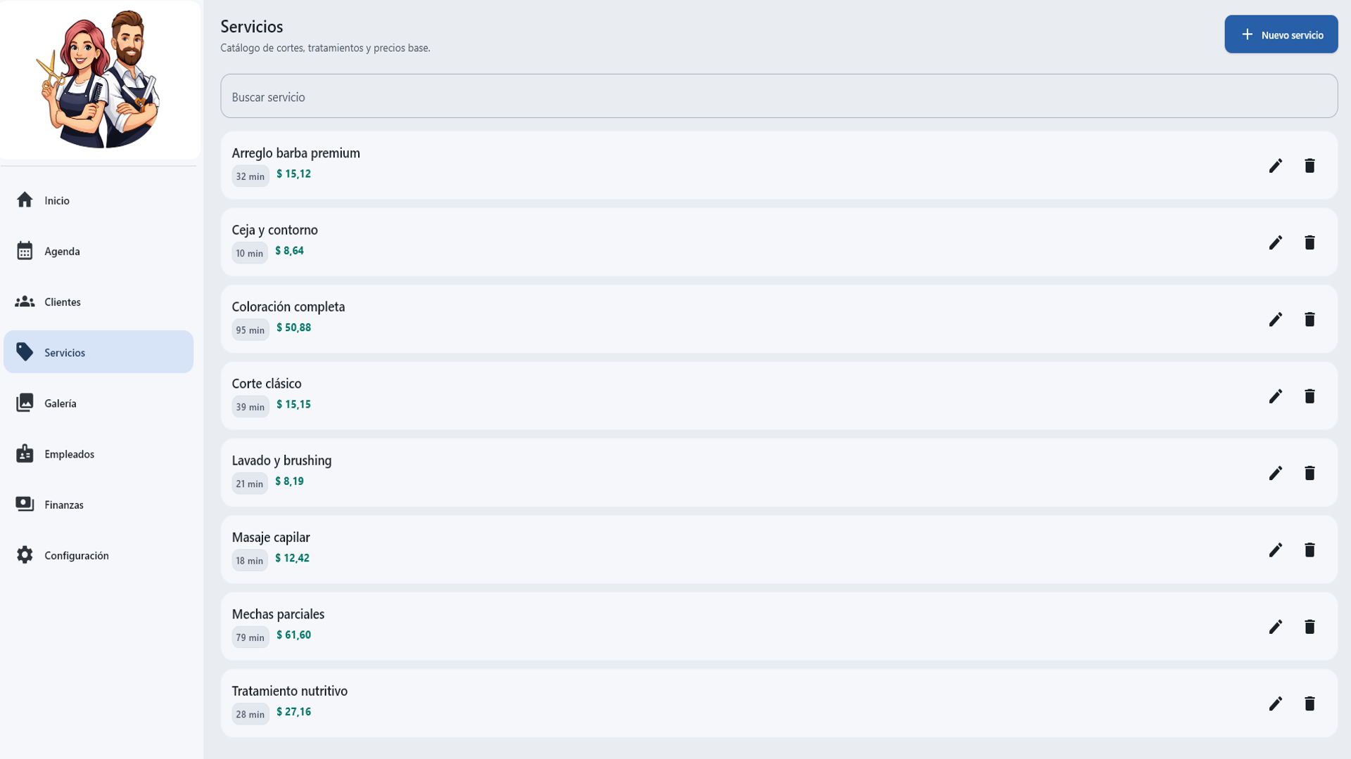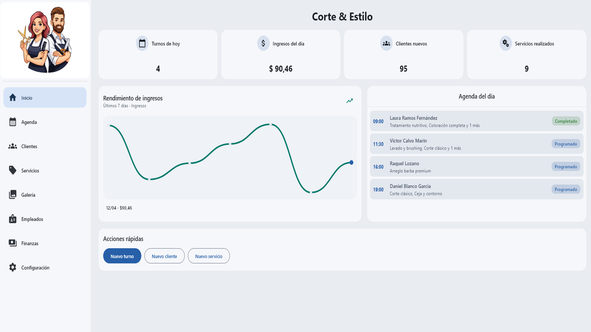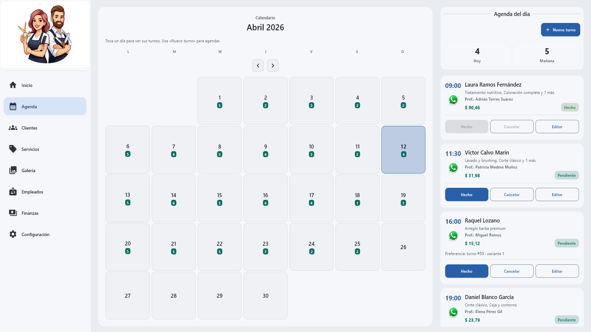 Corte y Estilo Pro es una app de escritorio para la gestión diaria de barberías y peluquerías: agenda, clientes, servicios y más, en un solo lugar, con aspecto profesional y ordenado.